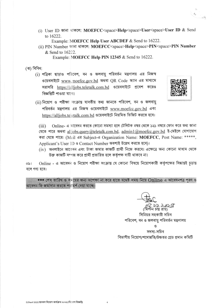 পরিবেশ, বন ও জলবায়ু পরিবর্তন মন্ত্রণালয় নিয়োগ বিজ্ঞপ্তি ২০২৫ – MOEFCC Job Circular 2025