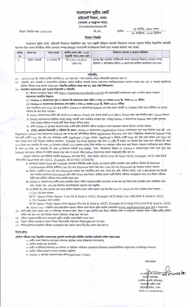 বিশেষ দ্রষ্টব্য: নিয়োগ সংক্রান্ত যেকোনো বিষয়ে কর্তৃপক্ষের সিদ্ধান্তই চূড়ান্ত বলে গণ্য হবে। পরীক্ষা সংক্রান্ত সকল আপডেট জানতে নিয়মিত বাংলাদেশ সুপ্রীম কোর্টের অফিসিয়াল ওয়েবসাইট ভিজিট করুন।