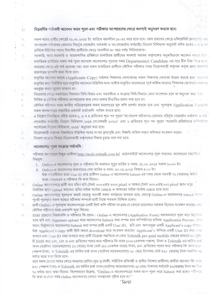 ২. চাকরিরত প্রার্থী: সরকারি/আধাসরকারি/স্বায়ত্তশাসিত প্রতিষ্ঠানে কর্মরত প্রার্থীদের অবশ্যই যথাযথ কর্তৃপক্ষের অনুমতি নিয়ে আবেদন করতে হবে এবং মৌখিক পরীক্ষার সময় অনাপত্তিপত্র (NOC) দাখিল করতে হবে।