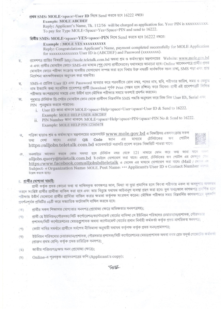 আবেদনের ওয়েবসাইট | http://mole.teletalk.com.bd |
