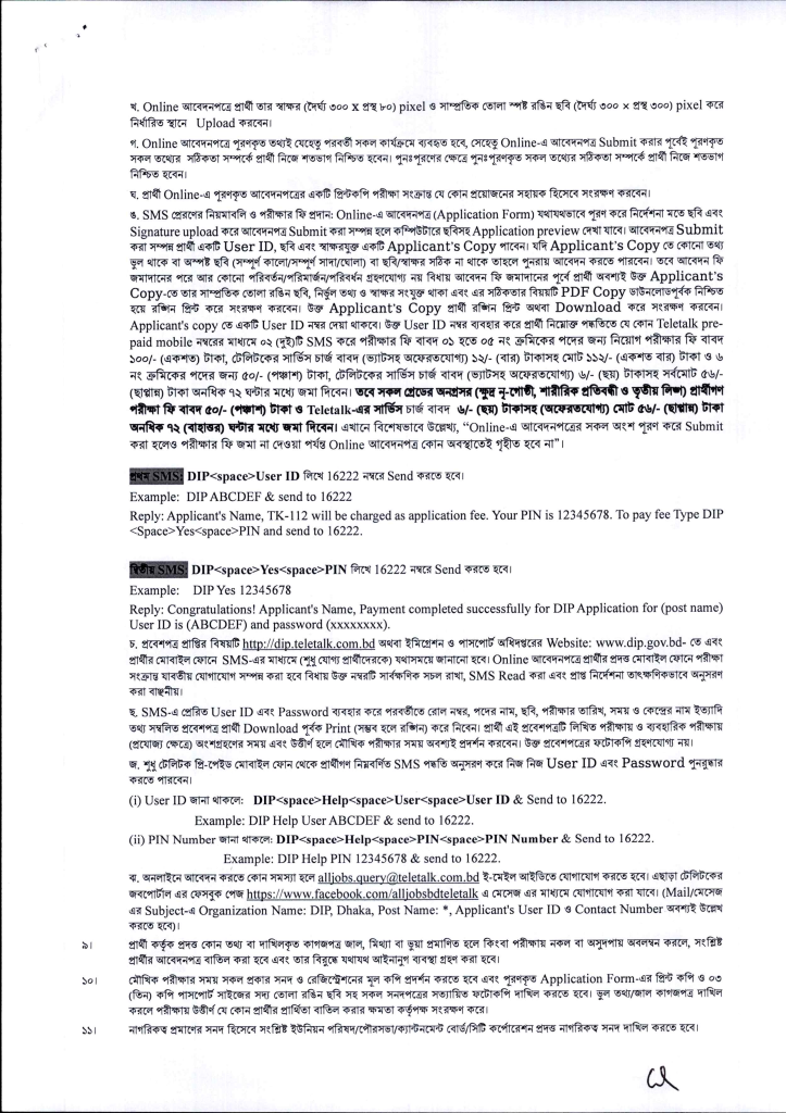 - প্রবেশপত্র: প্রবেশপত্র প্রাপ্তির বিষয়টি http://dip.teletalk.com.bd অথবা www.dip.gov.bd ওয়েবসাইটে এবং যোগ্য প্রার্থীদের মোবাইল ফোনে SMS-এর মাধ্যমে জানানো হবে।