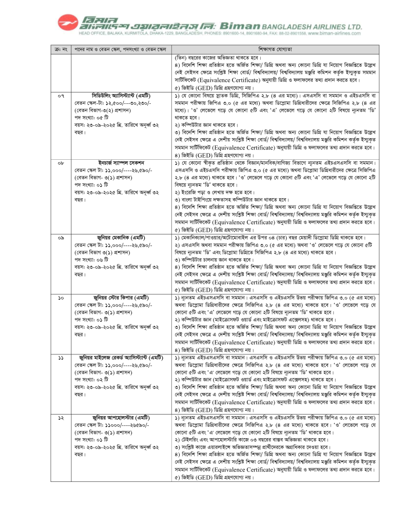 বিমান বাংলাদেশ এয়ারলাইন্স নিয়োগ বিজ্ঞপ্তি ২০২৫: ১২টি পদে চাকরির সুযোগ