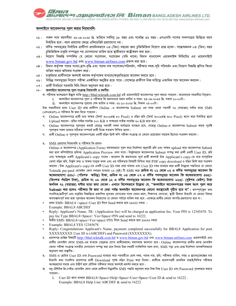 যোগ্য ও আগ্রহী প্রার্থীদের নির্ধারিত সময়ের মধ্যে আবেদন প্রক্রিয়া সম্পন্ন করার জন্য অনুরোধ করা হচ্ছে। নিয়োগ সংক্রান্ত যেকোনো আপডেট পেতে নিয়মিত বিমান বাংলাদেশ এয়ারলাইন্সের অফিসিয়াল ওয়েবসাইট ভিজিট করুন।