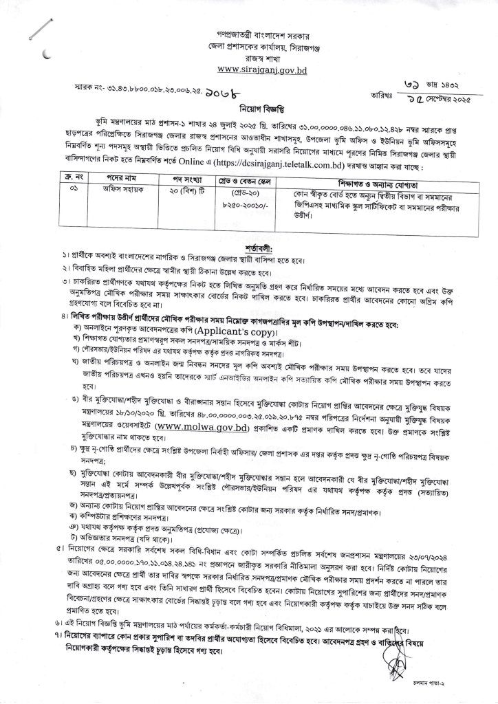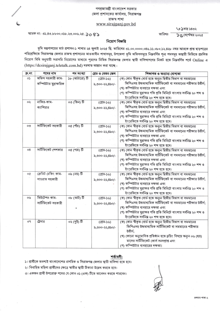 সিরাজগঞ্জ জেলা প্রশাসকের কার্যালয়ে নতুন নিয়োগ বিজ্ঞপ্তি ২০২৫: ৭০টি পদে বিশাল চাকরি!